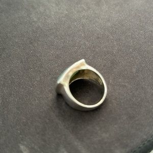 Sterling Silver And Faux Turquoise Ring. I believe this is Faux Turquoise, it does have some light brown veining in it. 925 Sterling stamp in the inside. Measures 1/2 inch wide. Size 5 GUC