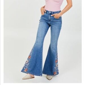 Altar’d State Laney Embroidered Blue Flare Jeans