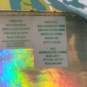 PVC bag, Gold handles and separate neon green bag with zipper