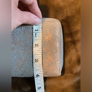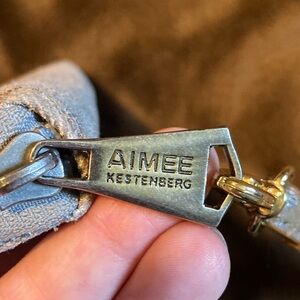 Aimee Kestenberg brand, pretty, shimmery wallet. Please see photos for measurements and any imperfections. The wristlet strap was added and is not a part of the original wallet but matches pretty well except for the color of the metals.