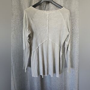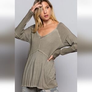 POL Mineral Wash Ribbed Long Sleeve V-Neck neck Top Moss green Size L