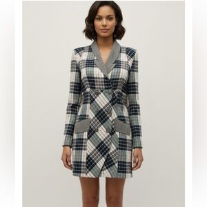 80s 90s Vintage Sorrena Tokyo 9 Blazer Suit Dress Plaid Long Sleeve Size Small
