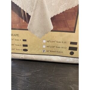 Vintage Laura Round Hand Scalloped Jacquard Tablecloth 60" Beige