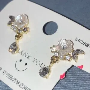 These elegant floral earrings feature delicate pearl accents and sparkling crystals, perfect for adding a touch of sophistication to any outfit.