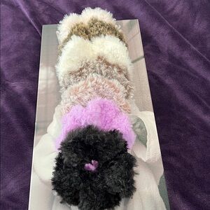 Add a touch of softness to your style with these One Faux Fur Hair Scrunchie - Winners Choice Featuring a blend of cream, brown, and pink hues, they are perfect for any occasion.