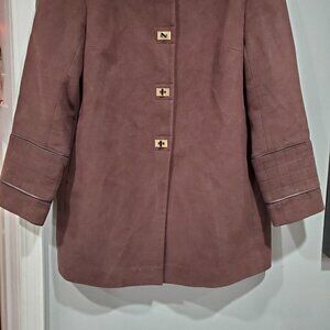Etcetera Women's Brown Cotton Black Leather Trim Jacket Turnlock Closure Size 14