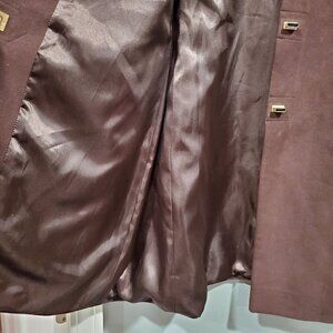 Etcetera Women's Brown Cotton Black Leather Trim Jacket Turnlock Closure Size 14. Please note all measurements are approximate.