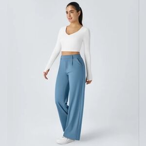 Nwt! Halara High Waisted Side Pocket Straight Leg Work Pants, Light Azure