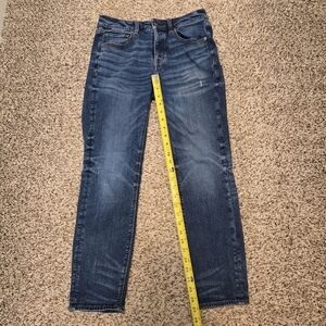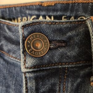 American Eagle Stretch Mid Rise Jeans Straight Leg Size 2 Short Four Button Fly