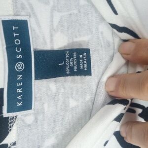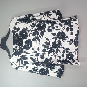 Karen Scott Black/White Floral 3/4 Sleeve Top Size Large