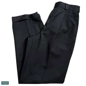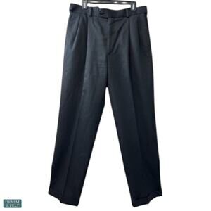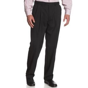 Louis Raphael Luxe Wool Pleated Dress Pants Hidden Waistband Black Classic 34x32