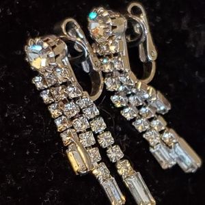 Vintage silvertone clip-on earrings with cascading clear rhinestones. Excellent condition.