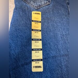 New with tags! Zip & button closure, pockets, high waisted flare denim trouser.