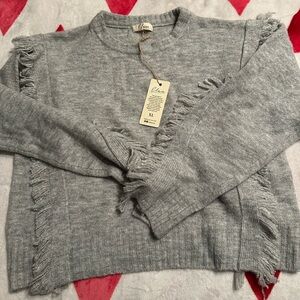 NWT Elan Knit Long Sleeve Fringe Detailed Pullover Sweater