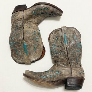Lucchese Desert Plato Turquoise Inlay Leather Cowboy Cowgirl Western Boots