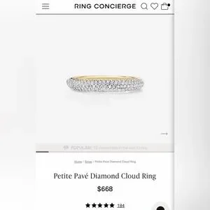 Ring Concierge Petite Cloud Ring. With pavé diamonds in yellow gold. No longer sold as a pair! Size 5! Worn 1-2 x. This will be sold as a single ring!