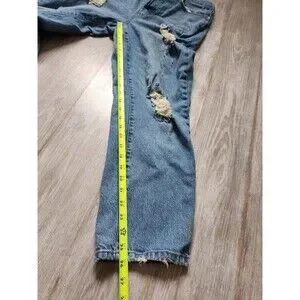 BDG Stretch High Rise Slim Straight Button Fly Blue Denim Jeans Distressed Sz 32