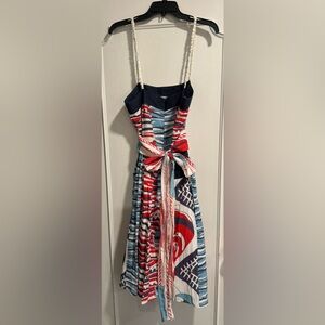 Double Zero Dress with pockets. Straps, bow in back. Red, white and blue.