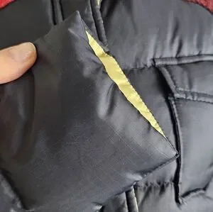 100% nylon outer, 80% down, 20% feathers - warm!