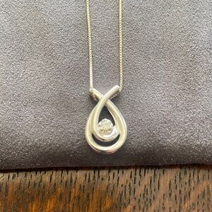 White gold 18” pendant necklace in excellent condition. Chain is perfectly elegant and dainty. I’m a yellow gold girl and never wear this. May have been worn twice. I’ll send in a pouch for safe keeping.