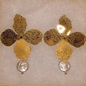 Stainless Steel Gold Tone Pearl Embellished Earrings