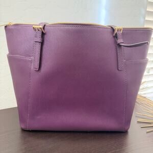 Michael Kors Jet Set Leather Tote Purple Saffiano Large Top Zip Handbag