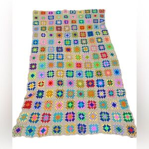 Vintage Classic Granny Square Afghan Cottage Cottagecore 89x66” See Photos