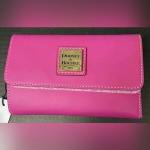 New Dooney & Bourke Wexford Leather Flap Wallet in Magenta 6"