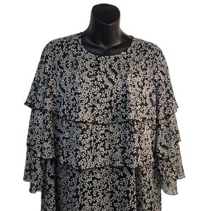 Who what wear Women's Black White Floral Print Dress Sz M