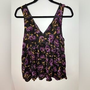 American Eagle Black & Purple Floral Babydoll Sleeveless Blouse Size Medium
