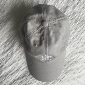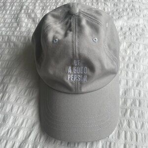 "Be A Good Person" dad baseball hat in grey with white embroidery