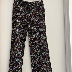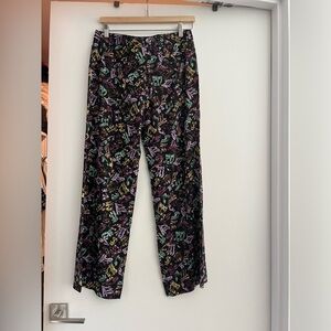Stylish pants with a vibrant music note pattern. Black base with multicolor accents. Perfect for casual wear.