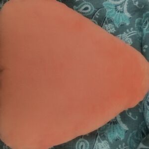 Adorable candy corn plush pillow with a smiling face. Features orange, yellow, and white colors.