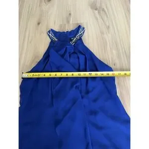 Women's SLNY Beaded Halter Neck Chiffon Dress Size 10 Royal Blue