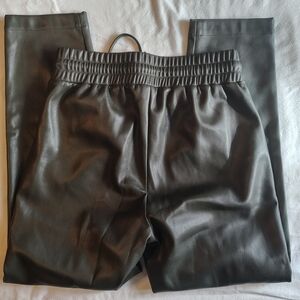 LOFT Pull on Drawstring Slim Olive Green Faux Leather Pants