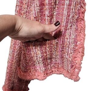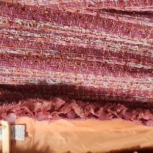 Dark pink rose boucle tweed with ribbon fringe detail throughout.