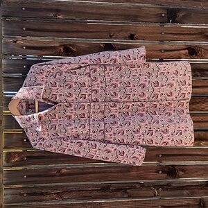 BANDOLINO Pink Gray Velvet Jacket L Topper Velour Retro Peacoat Driving Coat