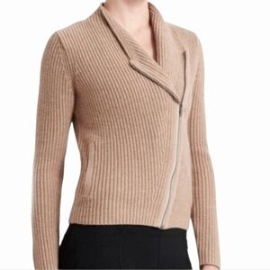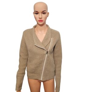 Athleta Stowe Moto Zip Merino Wool Asymetrical Beige Knit Cardigan Sweater Sz S