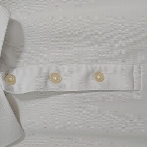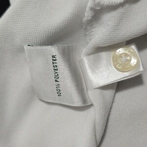 Classic white polo shirt featuring an embroidered Masters logo. Perfect for casual wear or the golf course. Men's XL. Breathable fabric. There are a few light stains shown in photos. No snags or tears. 100% polyester. Machine washable.