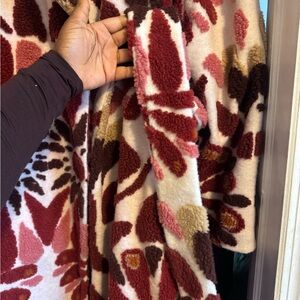 FARM Rio Ainika Flowers Fleece Coat Floral Textured - Red and Pink
