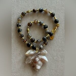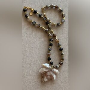 22 inch Black Cherry Blossom Agate Gemstone bead Necklace NWOT