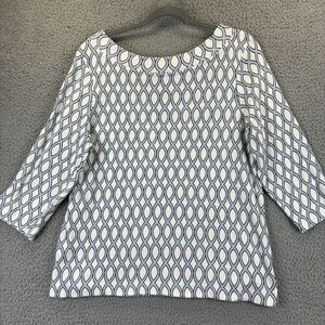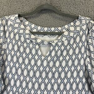 Chicos Top Large Beachy Coastal Nautical Convertible Geometric Twist-Neck Tee