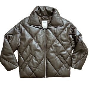 Abercrombie & Fitch Oversized Vegan Leather Brown Quilted Puffer Jacket Medium