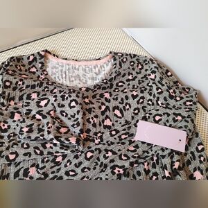 Joyspun Women’s Size M (8-10) Ribbed Top and Pants Pajama Set Sleep Wear Lounge Wear Leopard pink/grey/black