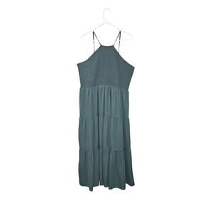 Arula Sage Green Tiered Maxi Dress Halter Neck Boho Size 1X Sleeveless