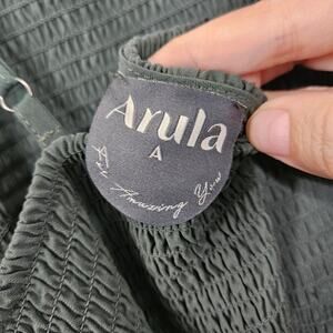 Arula Sage Green Tiered Maxi Dress Halter Neck Sleeveless Boho Size 1X. Adjustable straps. Tiered flowy boho peasant whimsical forest fairy. Arula size A which is 1X. 100% Polyester. Excellent condition.