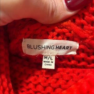 Aspen Red Extra Thick & Chunky Knit Turtleneck Sweater blushing heart M/L