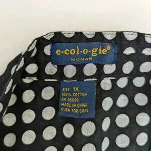 Ecologie Black And White Polka Dot Cotton Shirt Size 1X 3/4 Sleeves.
