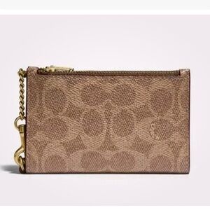Coach wristlet wallet in brown signature with rust leather inside, wristlet chain and multiple card slots. 2 zippered pockets. New, never used. Price is firm.