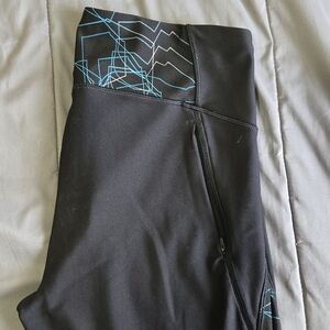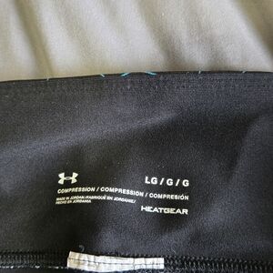 Sleek black leggings with Under Armour logo. Designed for performance.has one small hole.
